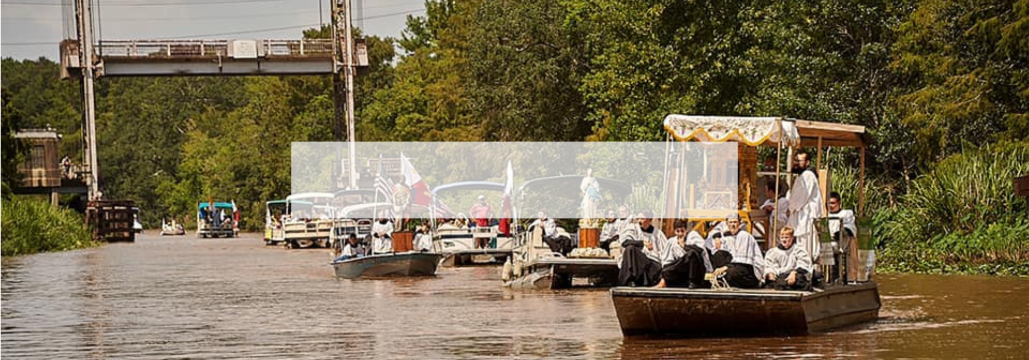 The procession begins, usually in Leonville, LA, with the Mass of the Solemnity of the Assumption of Our Lady in the French language of the Acadian people, followed by a foot procession to the boat dock. Flower girls donning white veils and dresses generously throw rose petals before the Eucharistic Lord, and many boys serve, carrying candles, incense, and bells. The whole occasion is marked by both solemnity and grandeur. As the Blessed Sacrament embarks, cannons and rifles are shot and hundreds gather along the banks of the boat launch. Between the two locations of Leonville and St. Martinville, the procession disembarks at four Catholic Churches founded by the Acadians directly on the bayou. Parishioners greet the Blessed Sacrament and pray a rosary. After Benediction the procession returns to the boats and continues the journey. Thousands of people cover the shores of the Teche to greet Jesus in the Blessed Sacrament, dropping to their knees as he passes in front of their homes. Traffic stops on bridges, where little girls in white dresses throw thousands of rose petals from the railings to honor the Lord as the Blessed Sacrament passes below. People alienated from their faith approach out of curiosity and are struck by the reverence and love the faithful show for God under the appearance of a piece of bread. What a marvel to see such a manifestation of Love, Jesus in such humble form and a whole world around Him shut down to honor Him. What a celebration of countercultural culture!