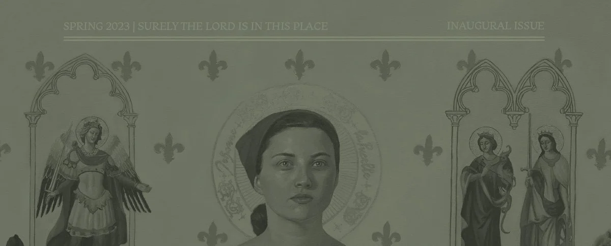 “Just play around with it,” Manny reassures me, zigzagging the cursor across a blank page on the computer screen. It’s Saturday morning, and I’m visiting the home studio of sacred artist Blair Piras and her husband Manny to brainstorm design ideas for Joie de Vivre, the print journal published by The St. Louis IX Art Society. The three of us huddle before the monitor where Manny, with heroic patience, gives me and Blair a crash course in Adobe InDesign to get the journal’s layout started. Off-screen, Blair doodles a bouquet of irises while nodding along to Manny’s pedagogy. I pick at a croissant and try to deflect the thought of how overwhelmed I am by having to meet the project’s deadline while learning a software entirely unfamiliar to me. My gaze then drifts to the corner of the room where morning sunlight flutters over a massive oil painting of the Woman Clothed with the Sun resting on Blair’s easel, that sacred platform where she’s created so many faith-inspiring works commissioned by local parishes and even by the Word on Fire Institute. And somehow more striking is the Fisher Price easel beside Blair’s where her toddler Auguste babbles to himself and, in imitation of his mother, traces his crayons across a sheet of construction paper. I then realize I’m sitting in what’s more than just an art studio. It’s a playroom. All of the faith-inspiring, transcendent images Blair has painted come from, of all places, her son’s playroom. This sacred space to play is the birthplace of beauty.
